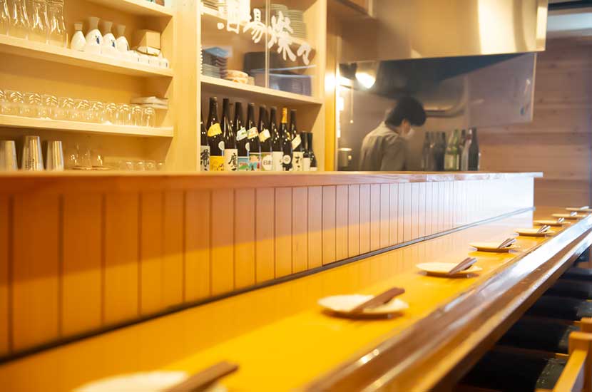 カウンタ―席のみのアットホームな店内。焼鳥を焼き上げる調理風景もご覧頂きながら、料理・お酒をご堪能ください。換気を徹底しており、密にならない空間のため、コロナ禍でも安心です。